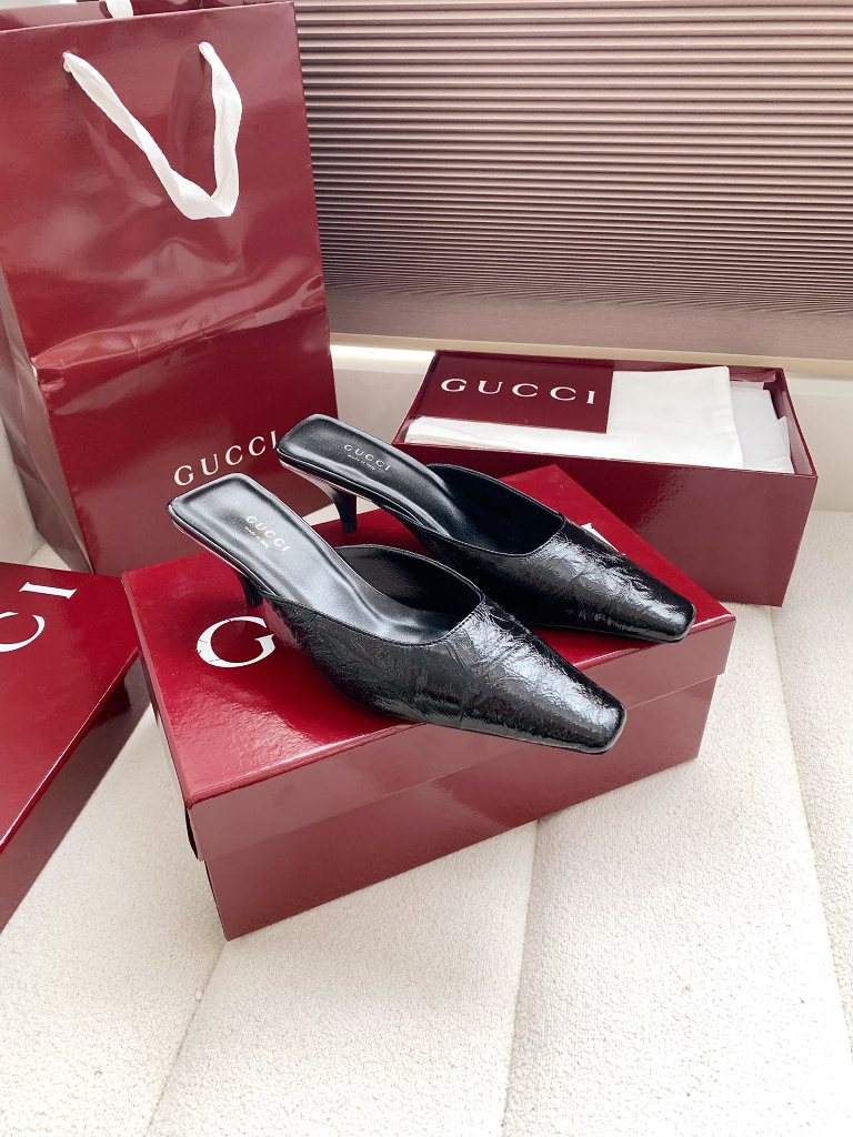op Quality Gucci2026 Spring/Summer New Product Classic Double G Diamond Button Pointed High Heels Single Shoes!