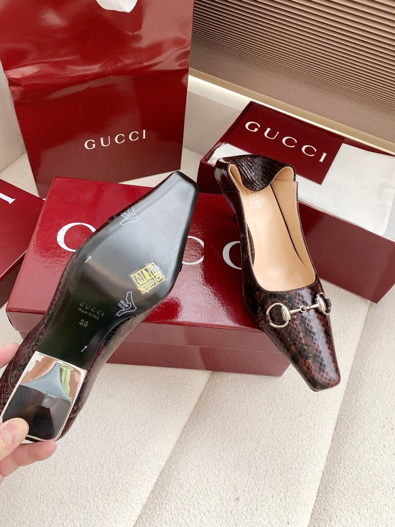 Top Quality Gucci2026 Spring/Summer New Product Classic Double G Diamond Button Pointed High Heels Single Shoes!