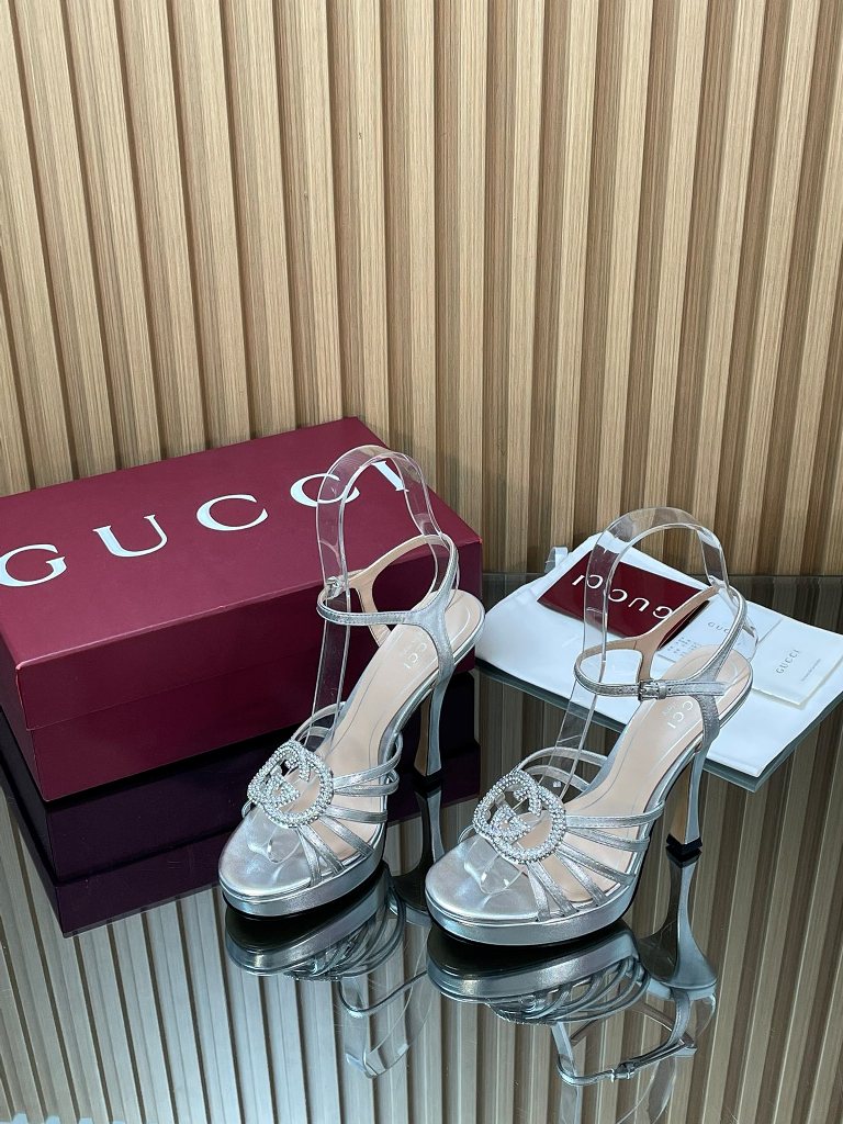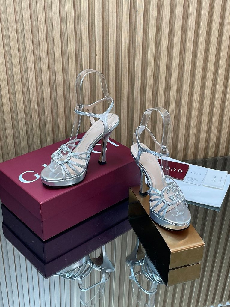 2026 Spring/Summer Collection G Home New GUCCI Crystal Diamond Inlaid Interlocking Double G-Button Sandals,