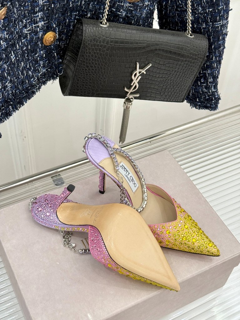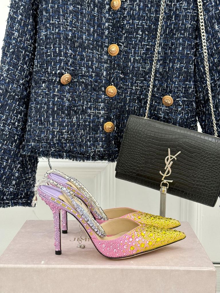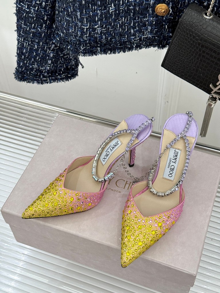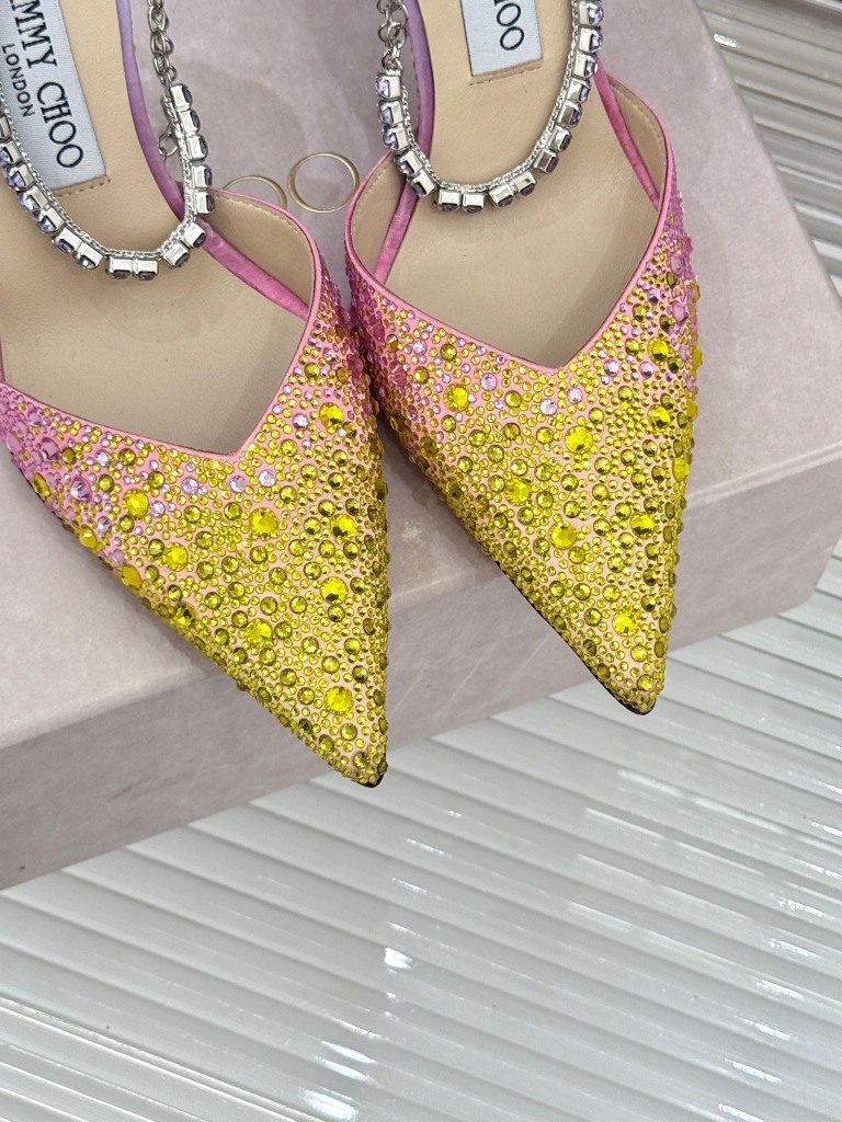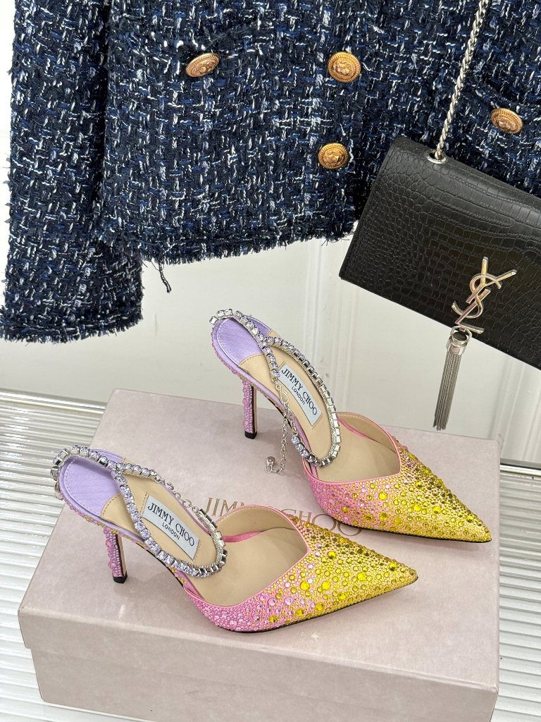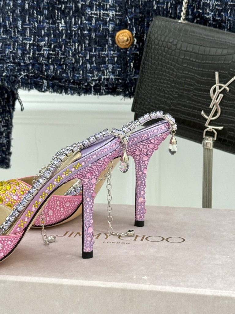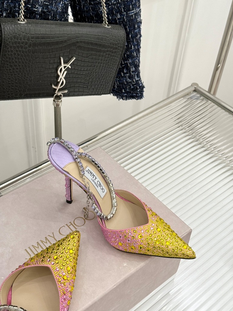 Jimmy Choo/ Classic Diamond Chain Pointed Crystal High Heel Sandals