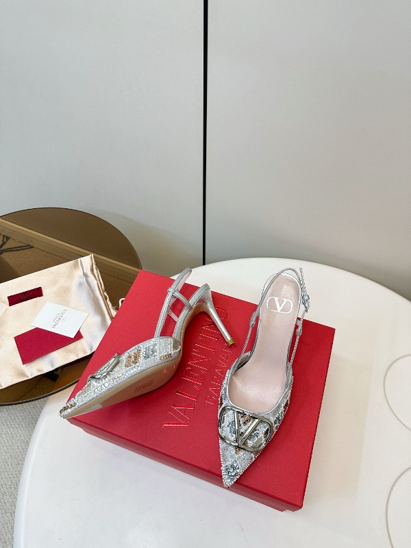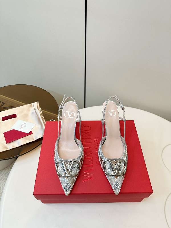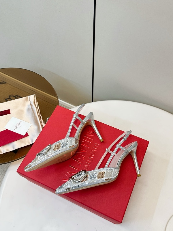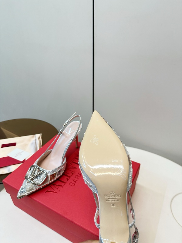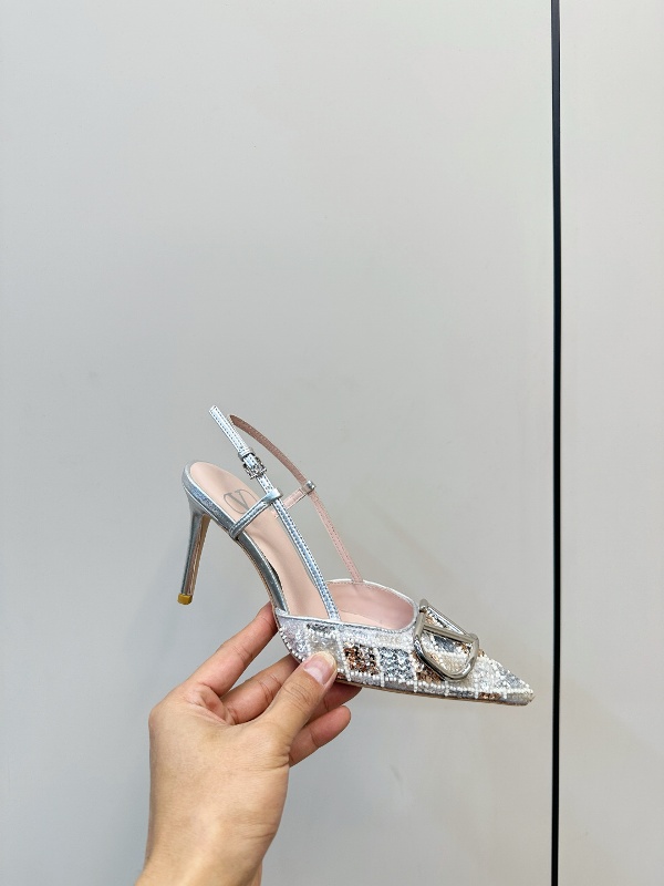 Valentino hand sewn sequined high heels with pointed and fine heel design,