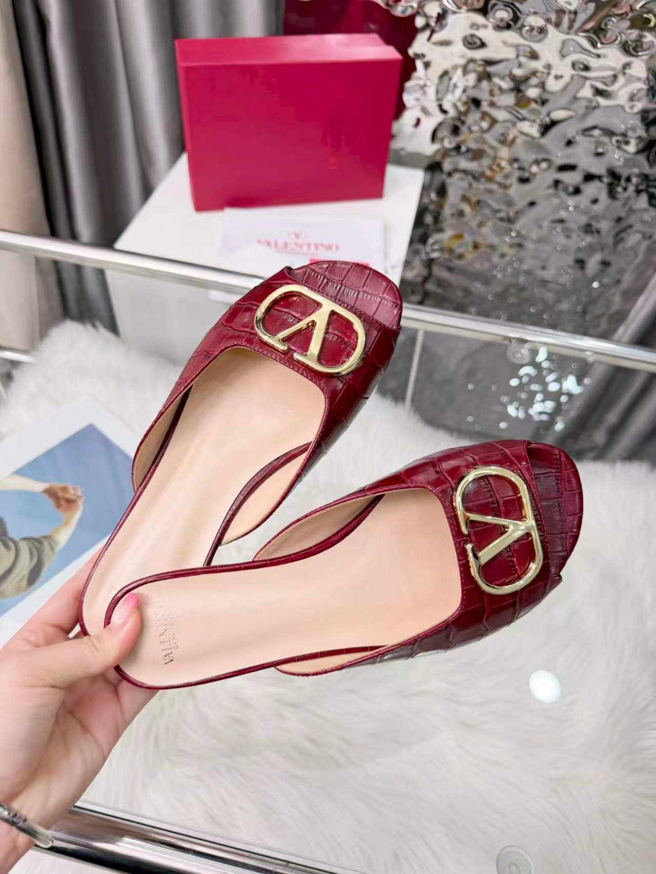 Valentino's new full leather stone Vlogo series fish mouth half drag