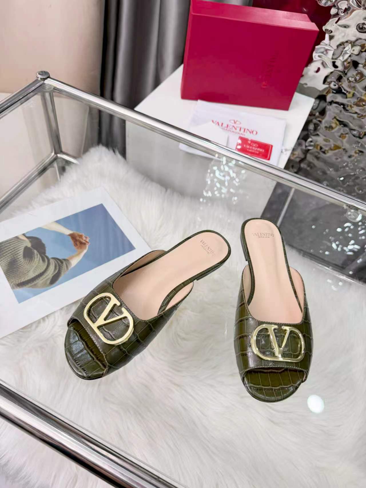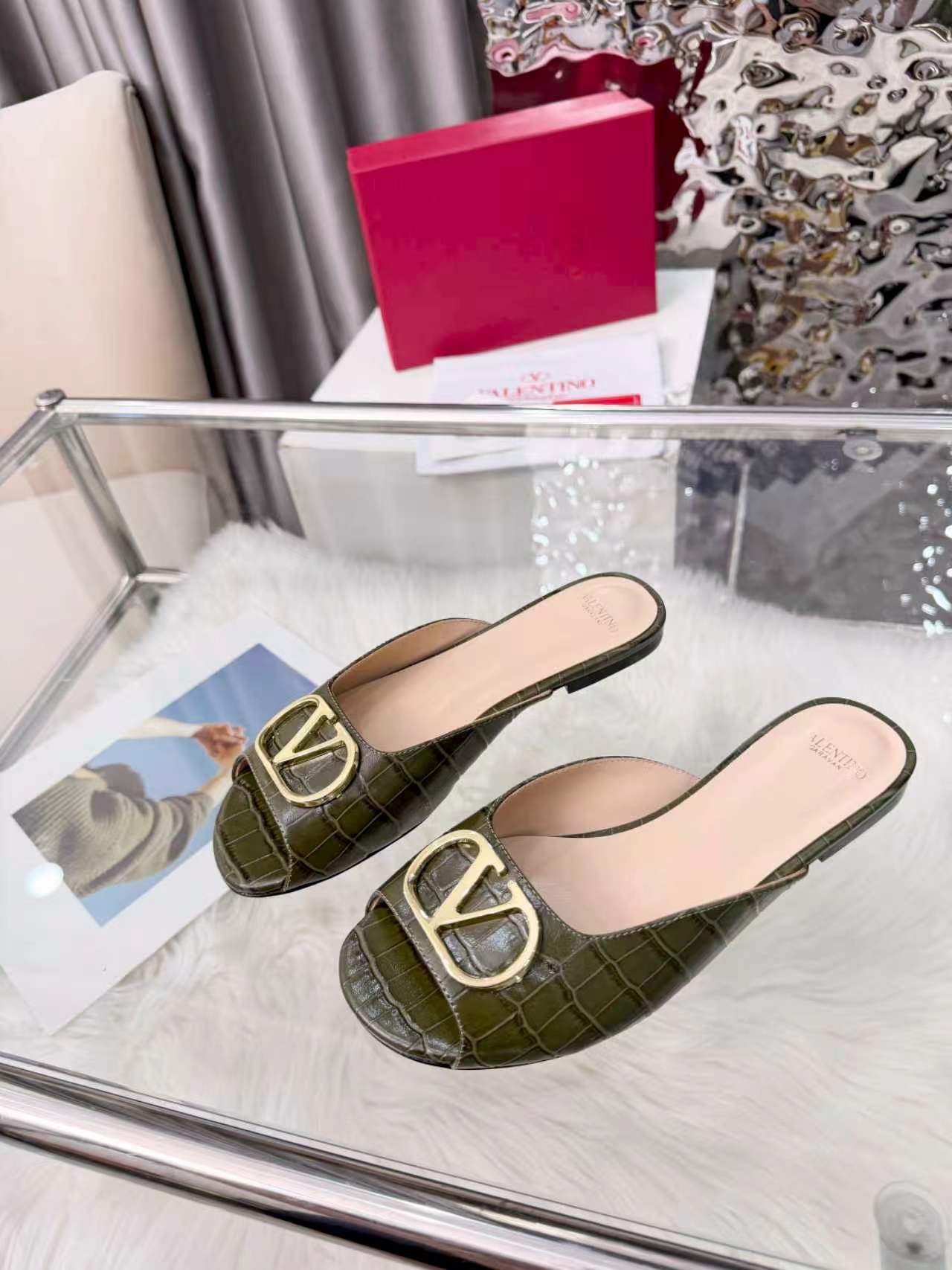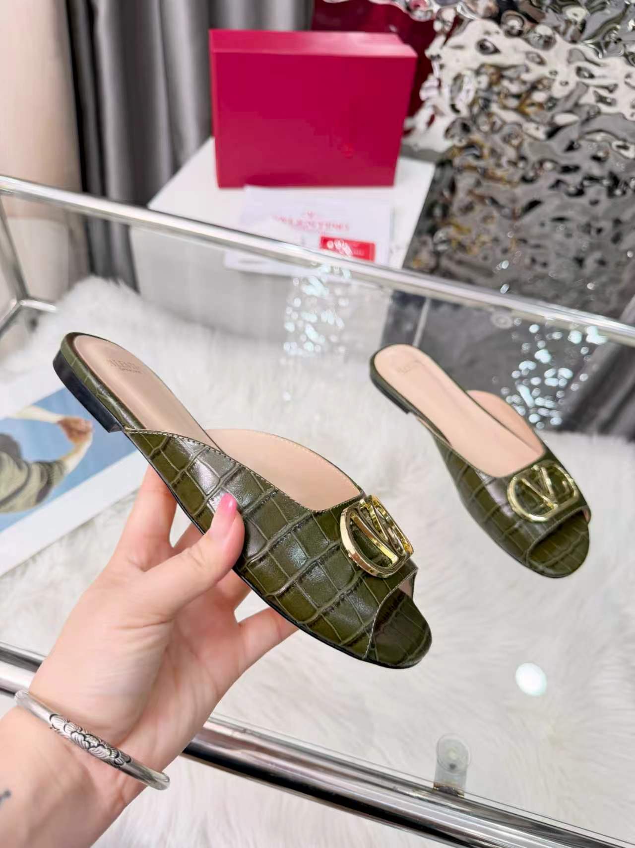 Valentino's new full leather stone Vlogo series fish mouth half drag