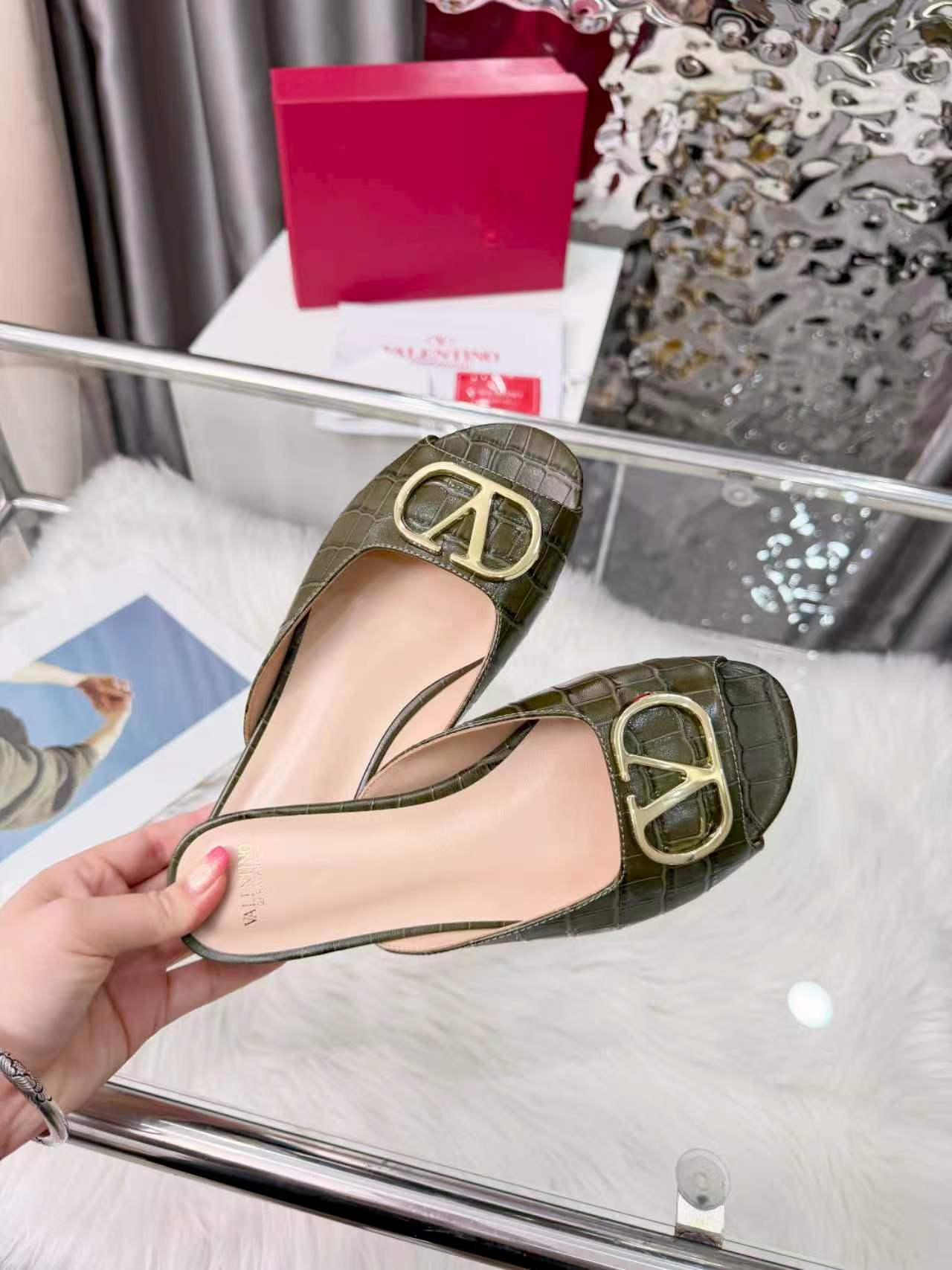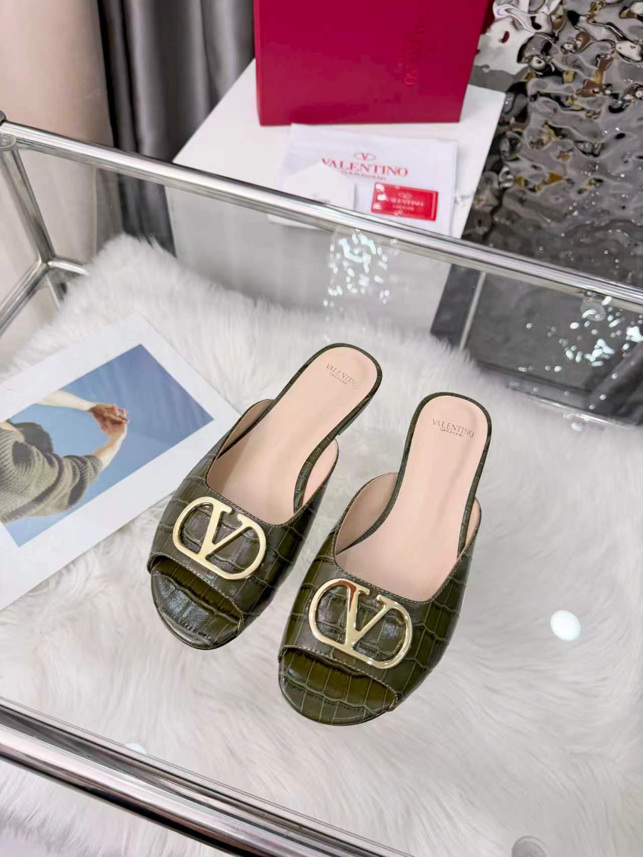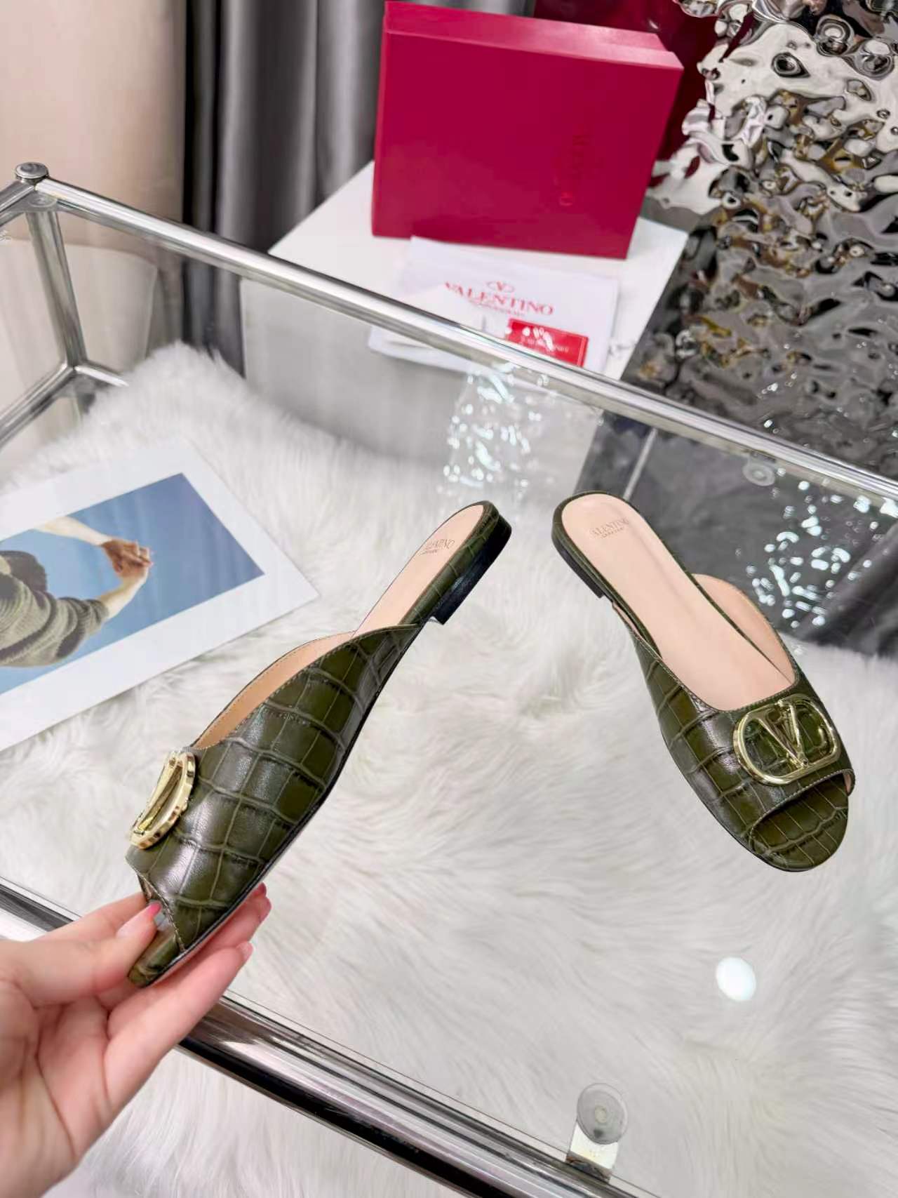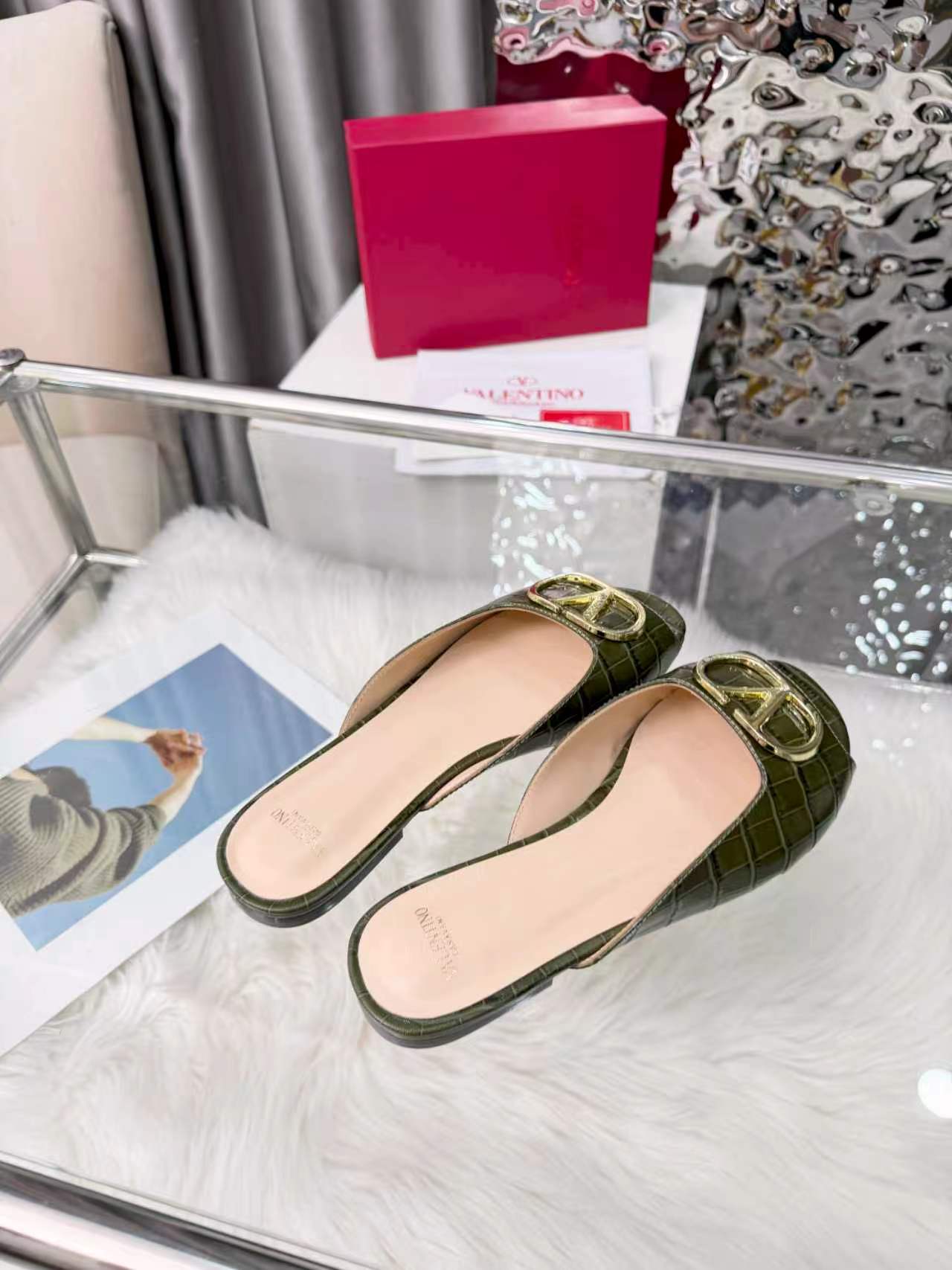 Valentino's new full leather stone Vlogo series fish mouth half drag